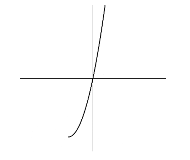 From the given figure, \( f \) appears to be a curve that increases and spans large \( y \)-values for small \( x \) changes.