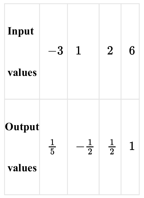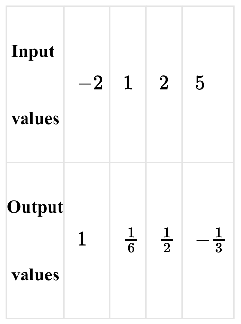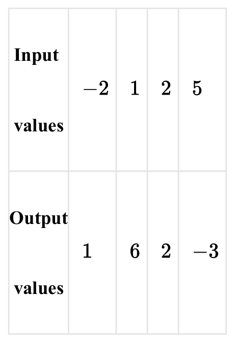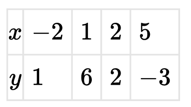 Sorting these by input value, we get: $(-3, 5)$, $(1, -2)$, $(2, 2)$, and $(6, 1)$.