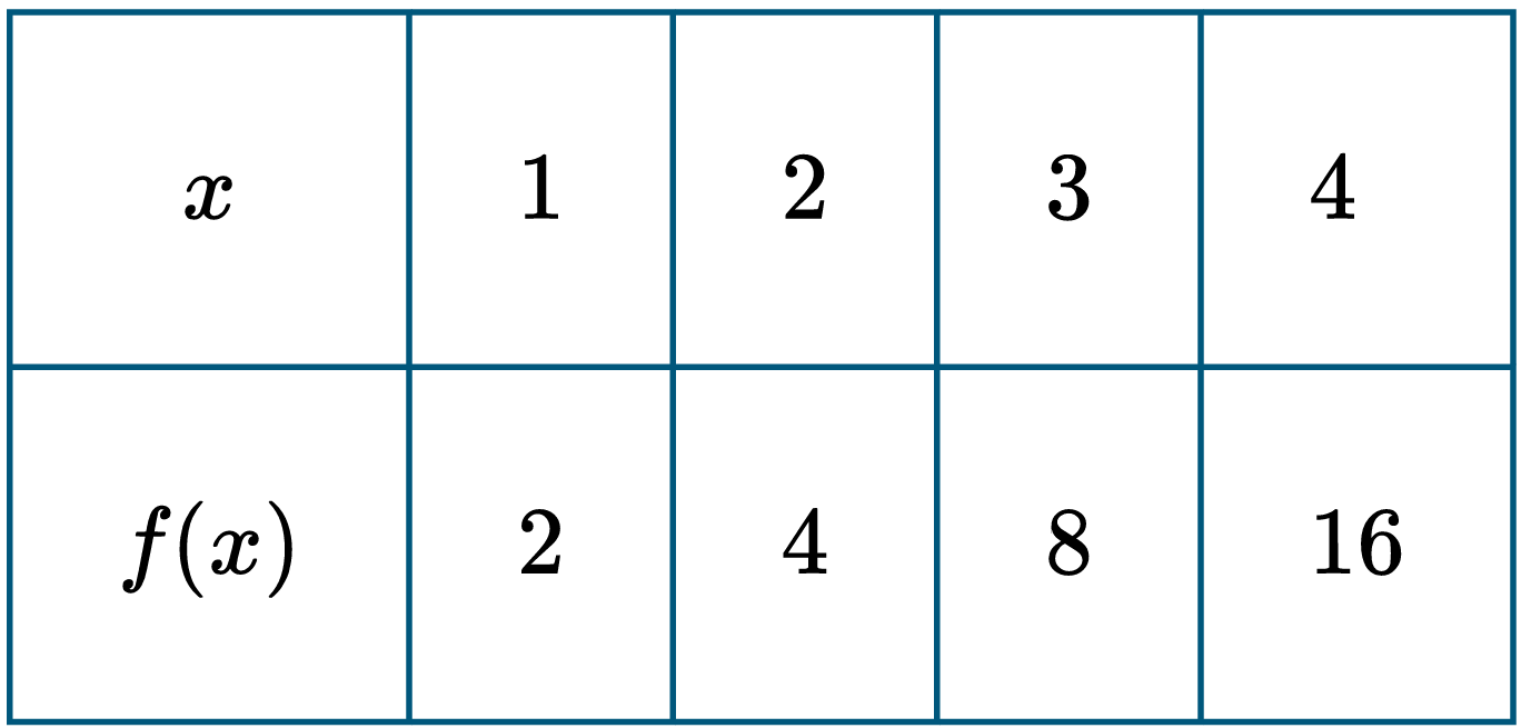 The original function $f$ is exponential because as $x$ increases by $1$, $f(x)$ doubles ($2, 4, 8, 16$).