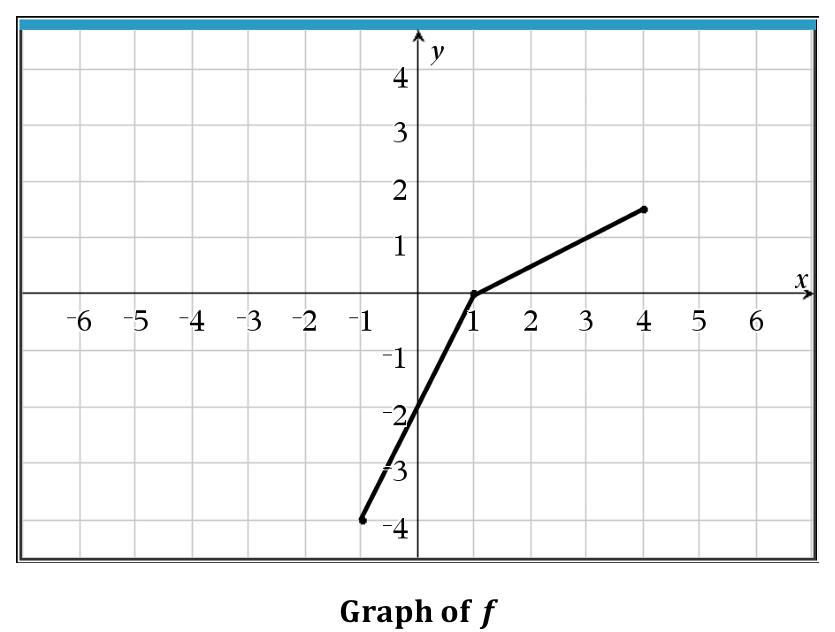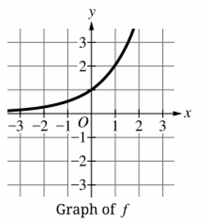 The graph shows $f$ passes through $(0, 1)$, $(1, 2)$, and $(2, 4)$.