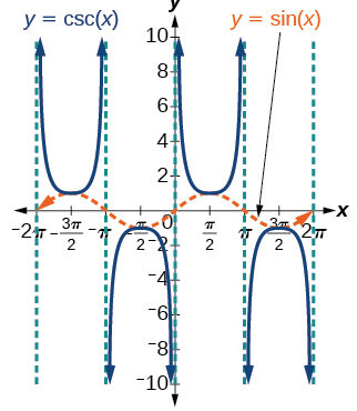 Because cosecant is the reciprocal of sine, it has the same period as sine, which is