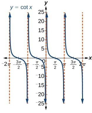 the graph of \( y = \cot \theta \) has vertical asymptotes at