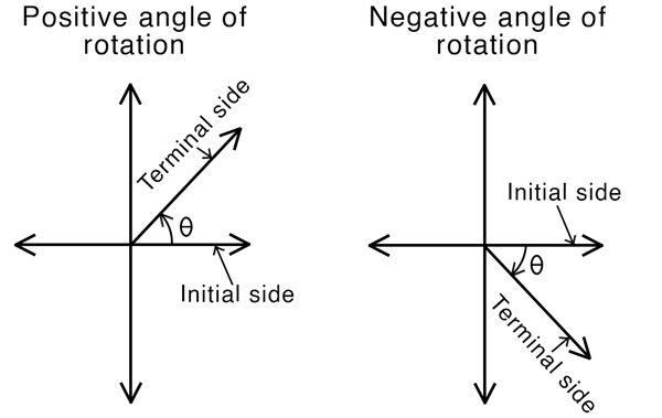 A positive angle measure corresponds to a counterclockwise rotation from the positive x-axis.
