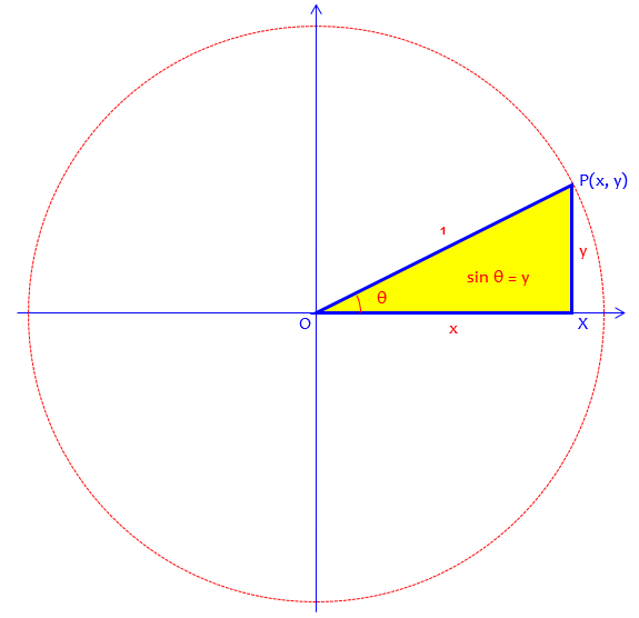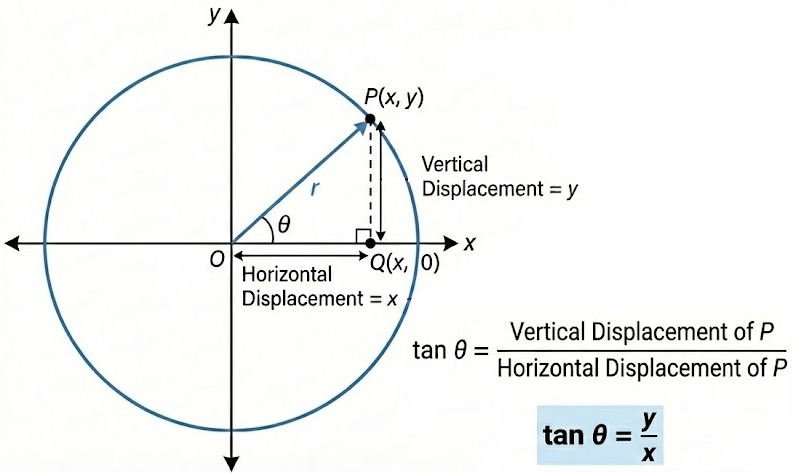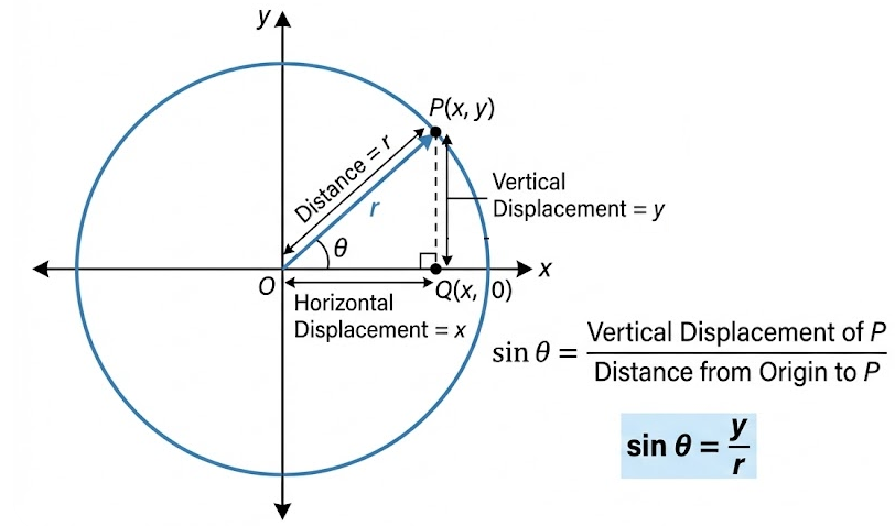 \( \sin \theta = \dfrac{\text{vertical displacement of } P}{\text{distance from origin to } P} \)