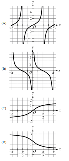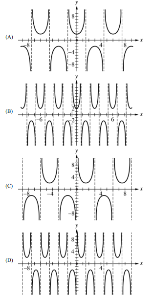Graph (D) matches these features: asymptotes every 1.5 units, period 3, branches outside \( [-2, 2] \).