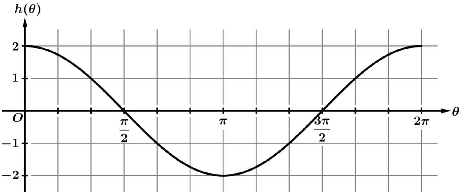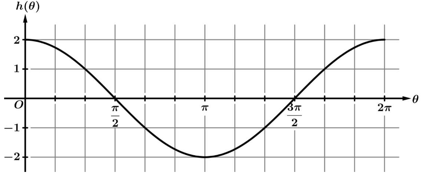 2. Observe the position of the function \(h(\theta)\) relative to the x-axis. In this specific interval, the graph is entirely above the x-axis, which means \(h\) is positive.