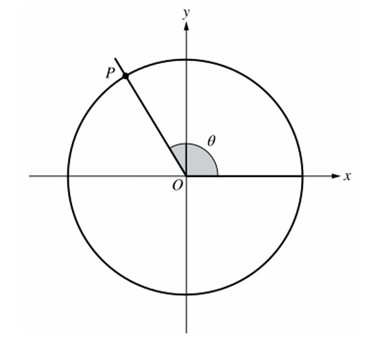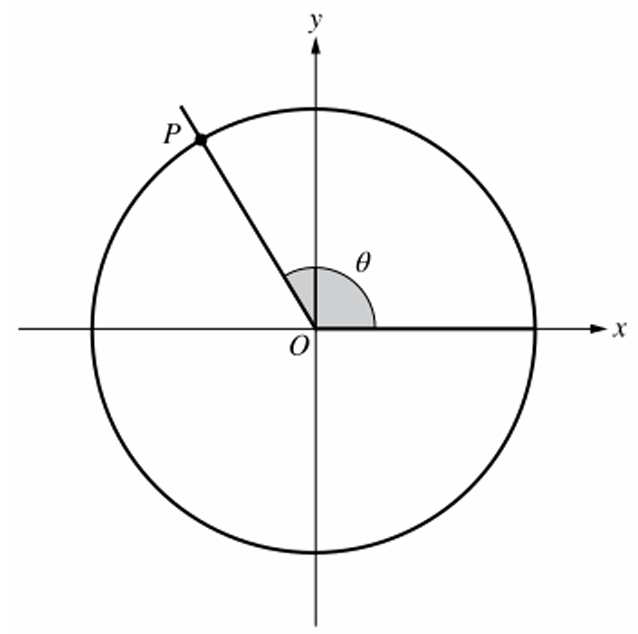 Thus \( f(\theta) = \sin\theta \) gives the vertical displacement of \( P \) from the \( x \)-axis.