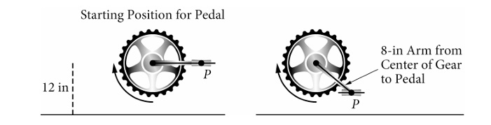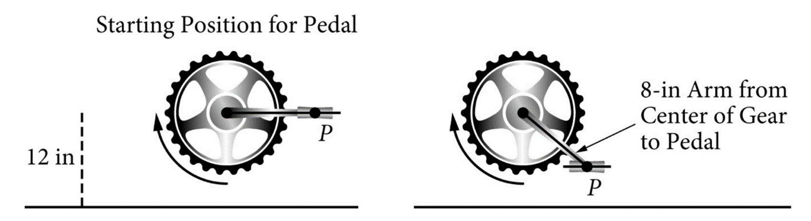 The pedal moves in a circle with radius \(8\) inches, so the amplitude is \(8\).
