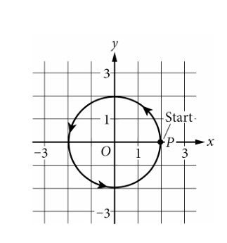 Thus \( P \) touches ground once per period when \(\cos = -1\).