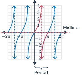 Period: \( \left| \dfrac{1}{b} \right| \pi = \dfrac{\pi}{|b|} \)