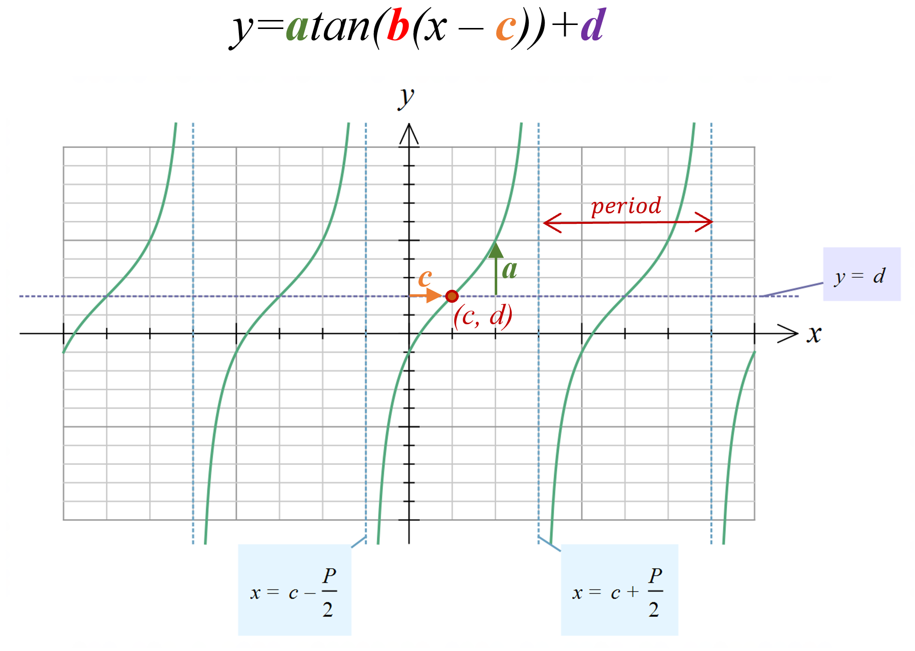 The basic tangent graph has points of inflection along the line