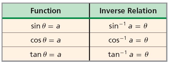 An inverse trigonometric function reverses the input–output relationship of its corresponding trigonometric function.