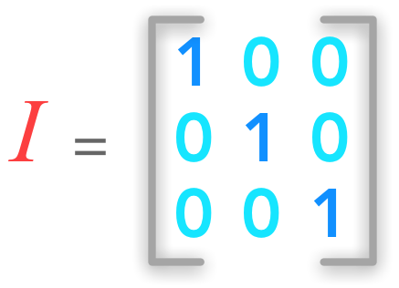 The identity matrix, denoted by \( I \), is a square matrix with: