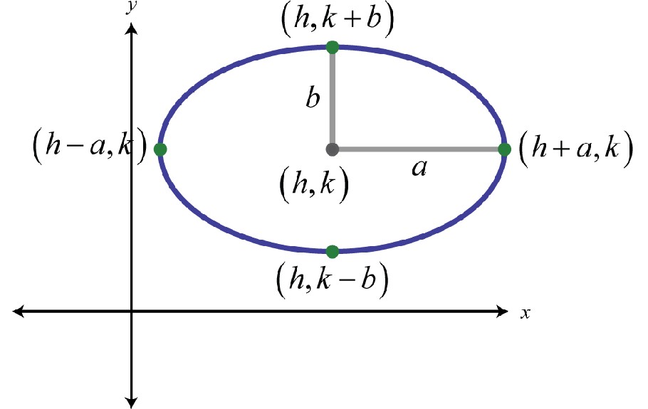 An ellipse centered at \( (h, k) \) with horizontal radius \( a \) and vertical radius \( b \) can be represented analytically by the equation