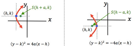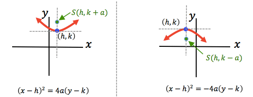 If a parabola has vertex \( (h, k) \) and \( a \neq 0 \), it can be represented analytically in vertex form, where the orientation of the parabola depends on which variable is squared.