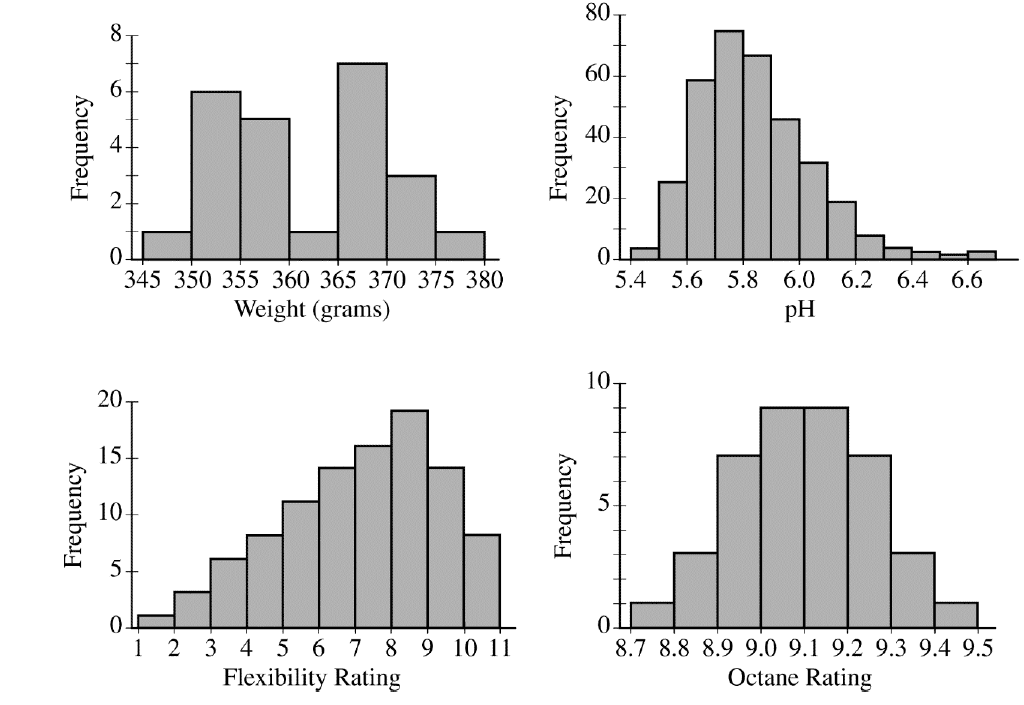 • Octane Rating: mound-shaped and balanced ⇒ symmetric and unimodal → matches option (E).