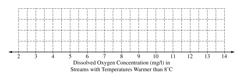 (c) The researchers believe that streams with higher dissolved oxygen concentration are generally healthier for wildlife. Which streams are generally healthier for wildlife, those with water temperature colder than \( 8^\circ \mathrm{C} \) or those with water temperature warmer than \( 8^\circ \mathrm{C} \)? Using characteristics of the distribution of dissolved oxygen concentration for temperatures colder than \( 8^\circ \mathrm{C} \) and characteristics of the distribution of dissolved oxygen concentration for temperatures warmer than \( 8^\circ \mathrm{C} \), justify your answer.