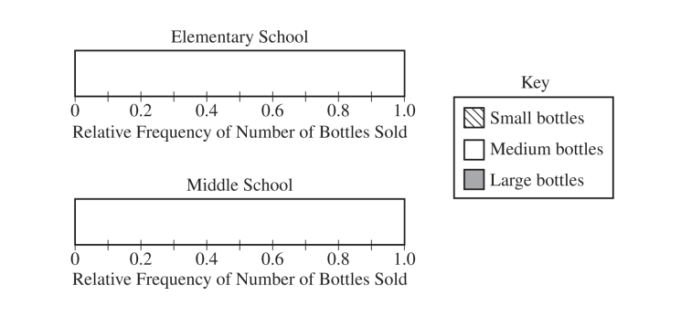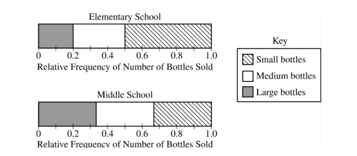 A local middle school also decided to sell bottles as a fund-raiser, using the same three sizes (small, medium, and large). The middle school students sold three times the number of bottles that the elementary school students sold. For the middle school students, the proportion of bottles sold was equal for all three sizes.