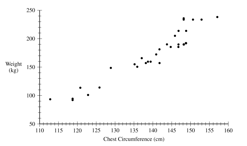 predicted weight \( = -350.3 + 3.7455(\text{chest circumference})\)