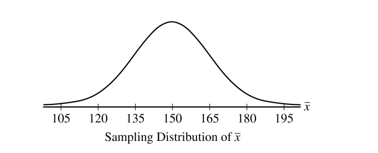 The range of the curve is from 105 to 195, centered at 150. This range represents approximately 3 standard deviations above and below the mean.