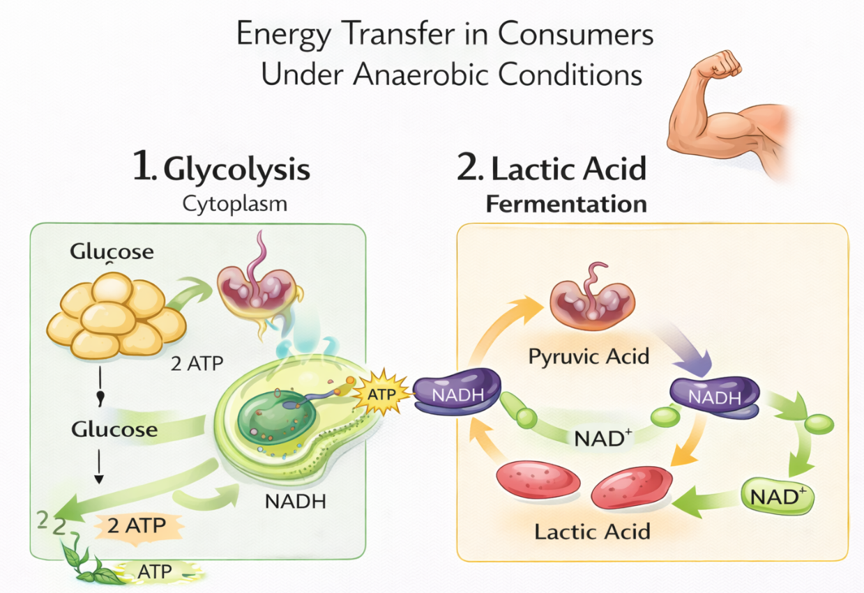 CELLS 7.2(b) Describe how energy transfer in the cell occurs under anaerobic conditions in consumers.