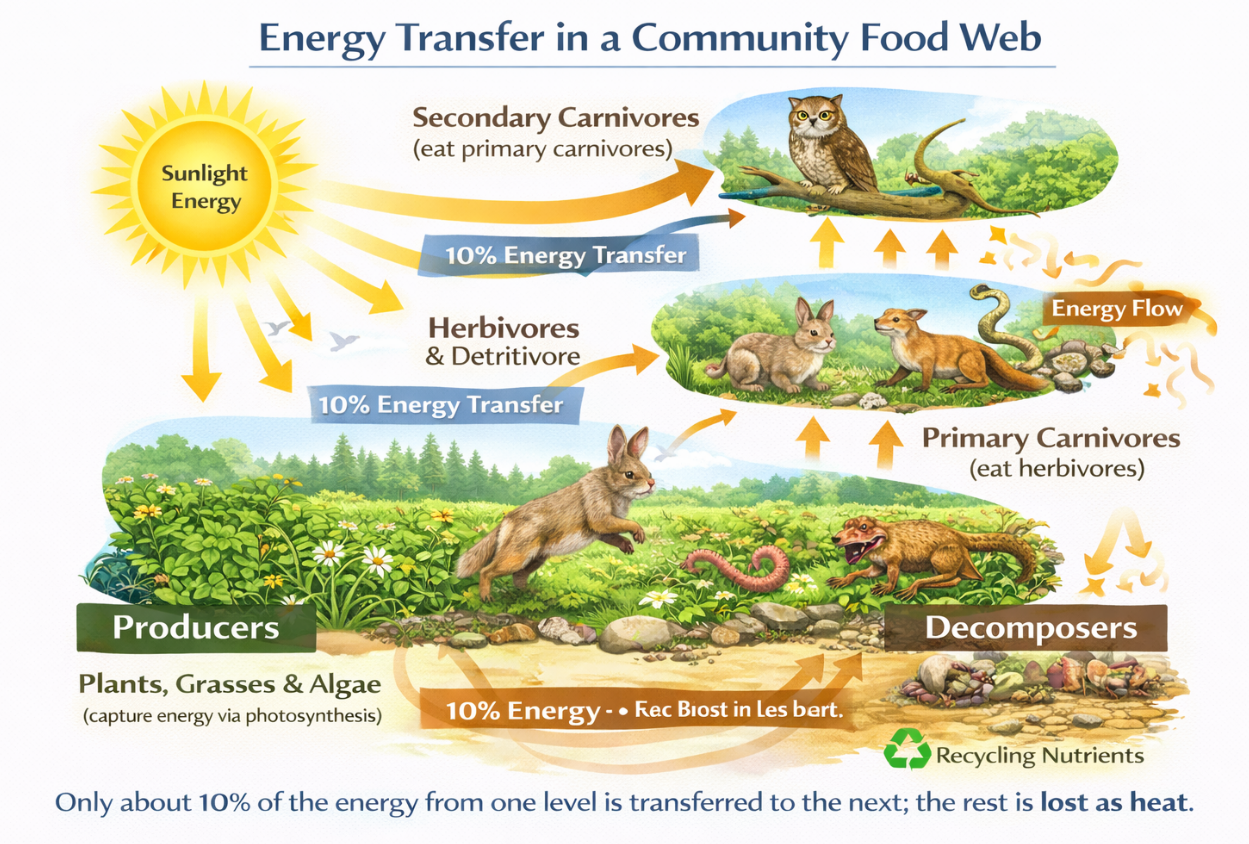 Transfer of Energy Through the Food Web of a Community