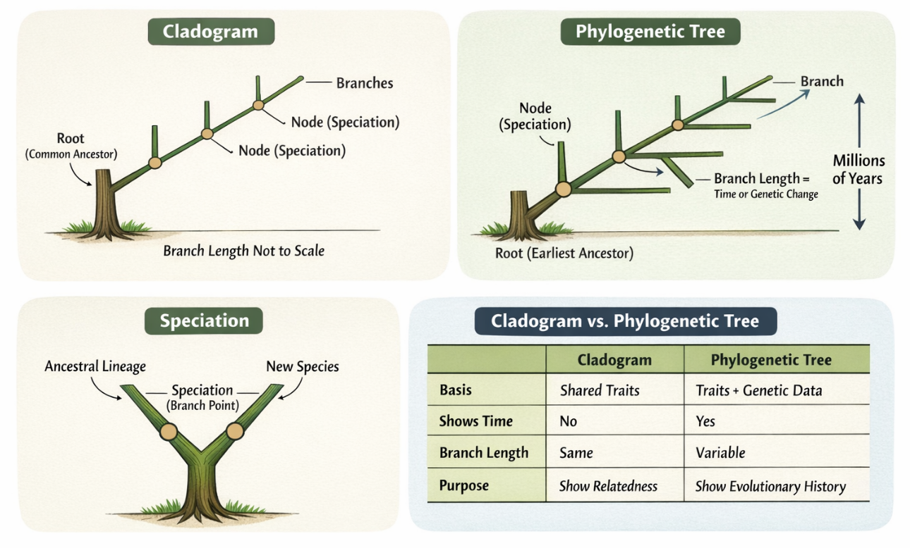 📊 Cladogram vs Phylogenetic Tree