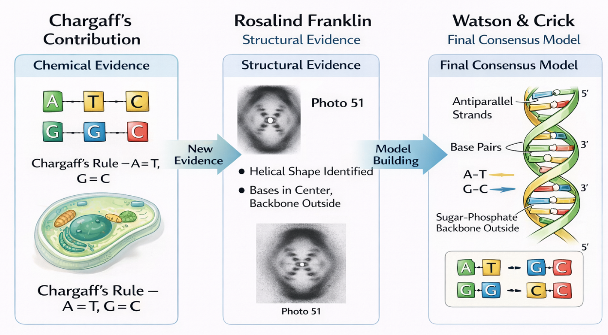 Chargaff → Franklin → Watson & Crick