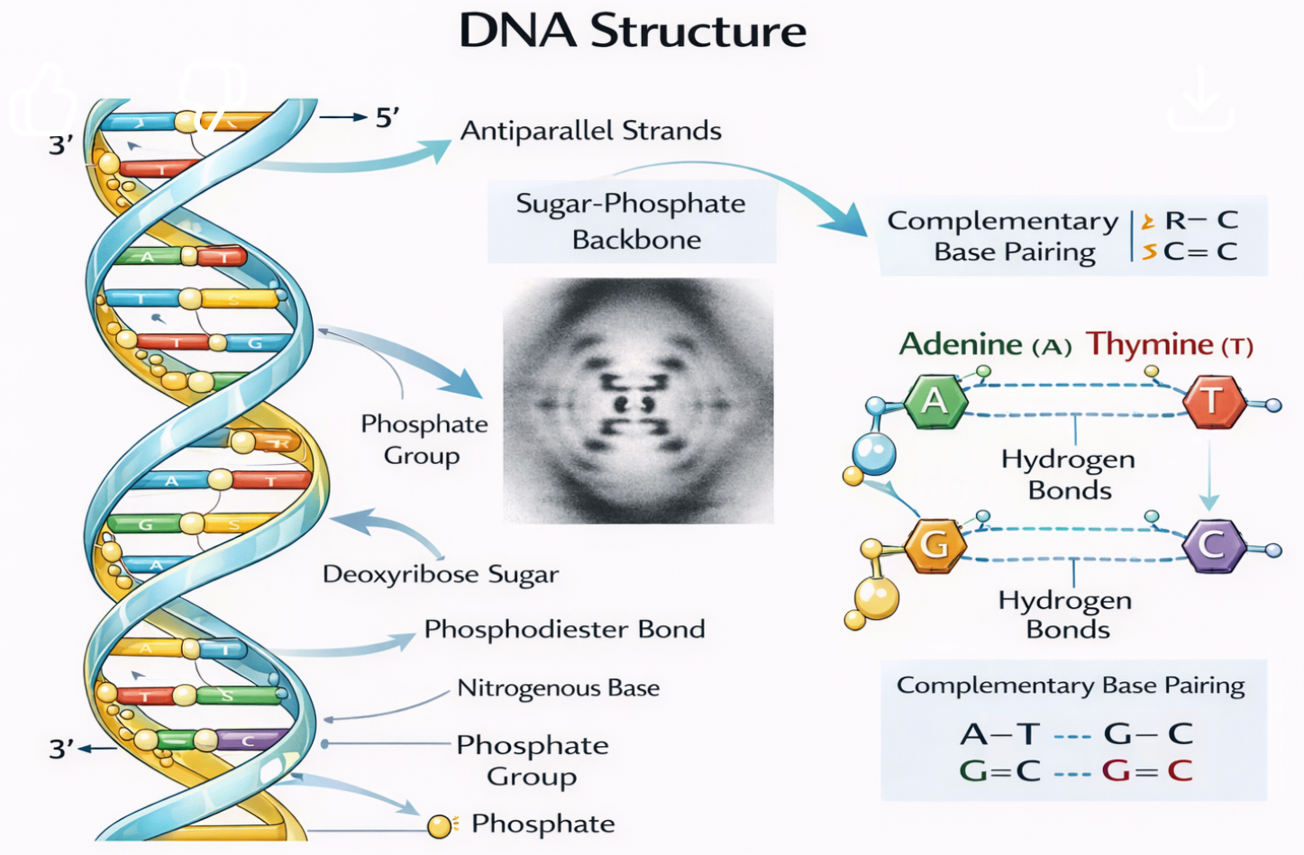 | Components | Phosphate + Deoxyribose + Base |