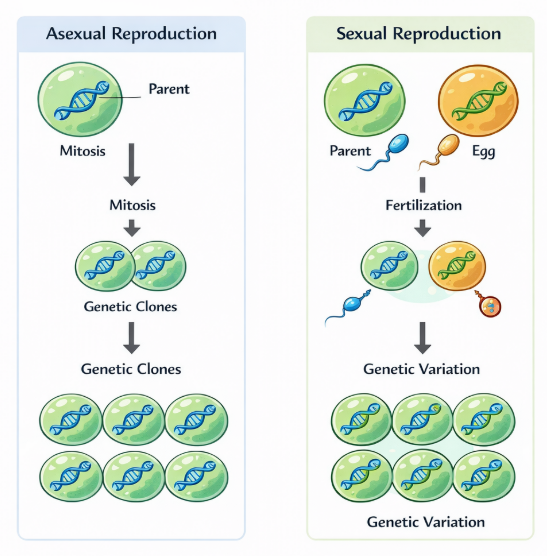 🧬 Step 5 – Asexual Reproduction Uses DNA Copying, Not Gene Mixing