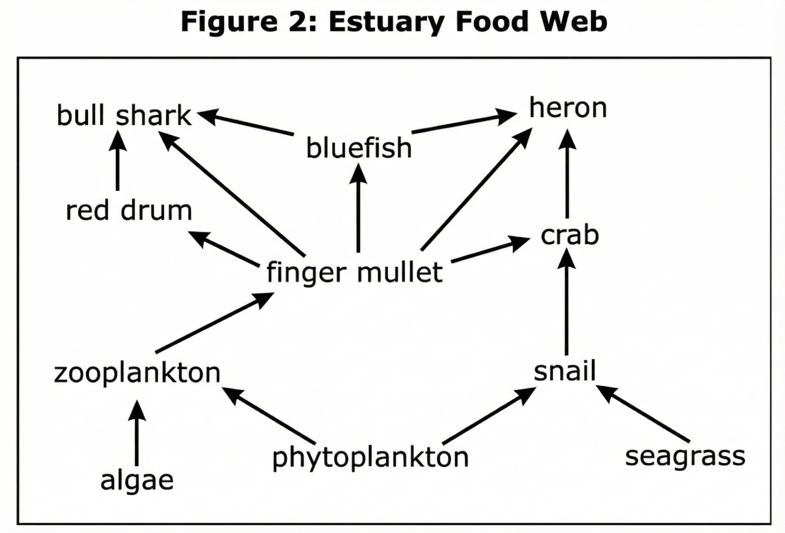 Q. Based on the food web (Figure 2), what effect will a decrease in the algae population have on the finger mullet population in the estuary?