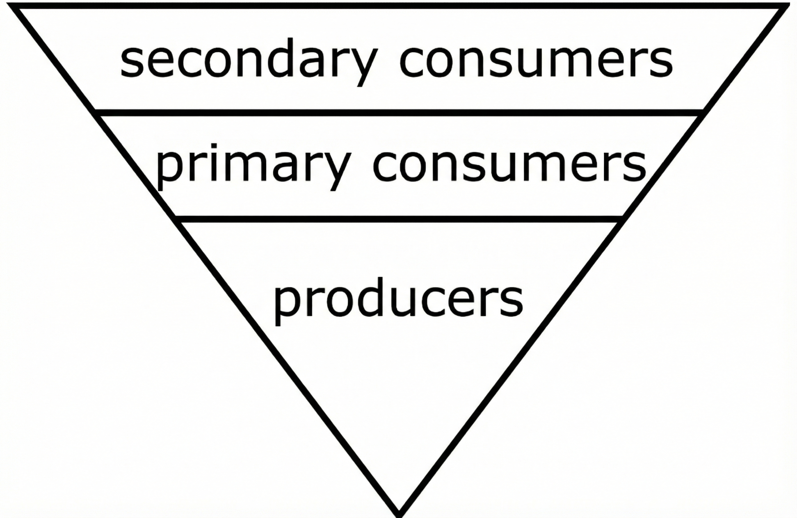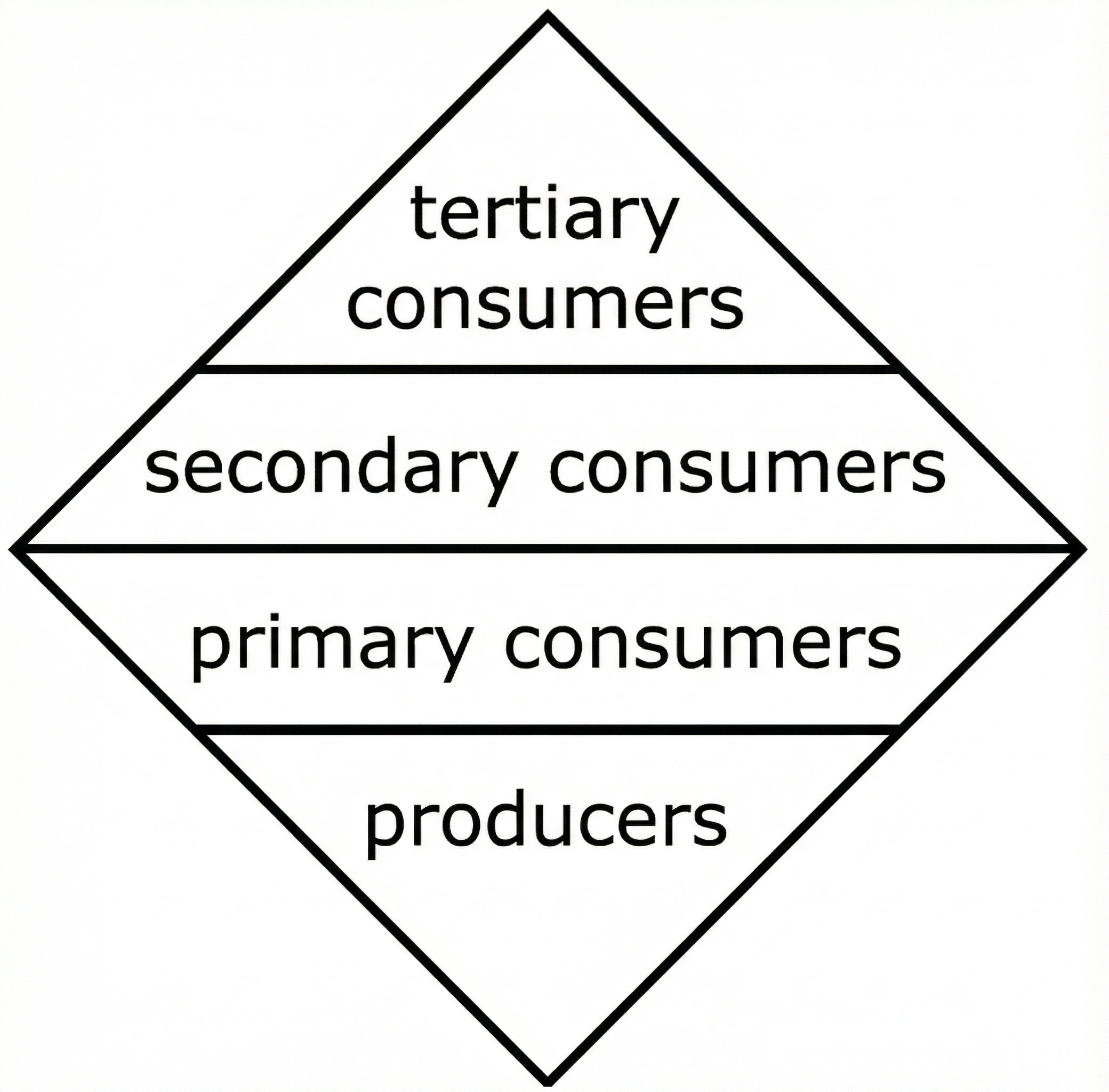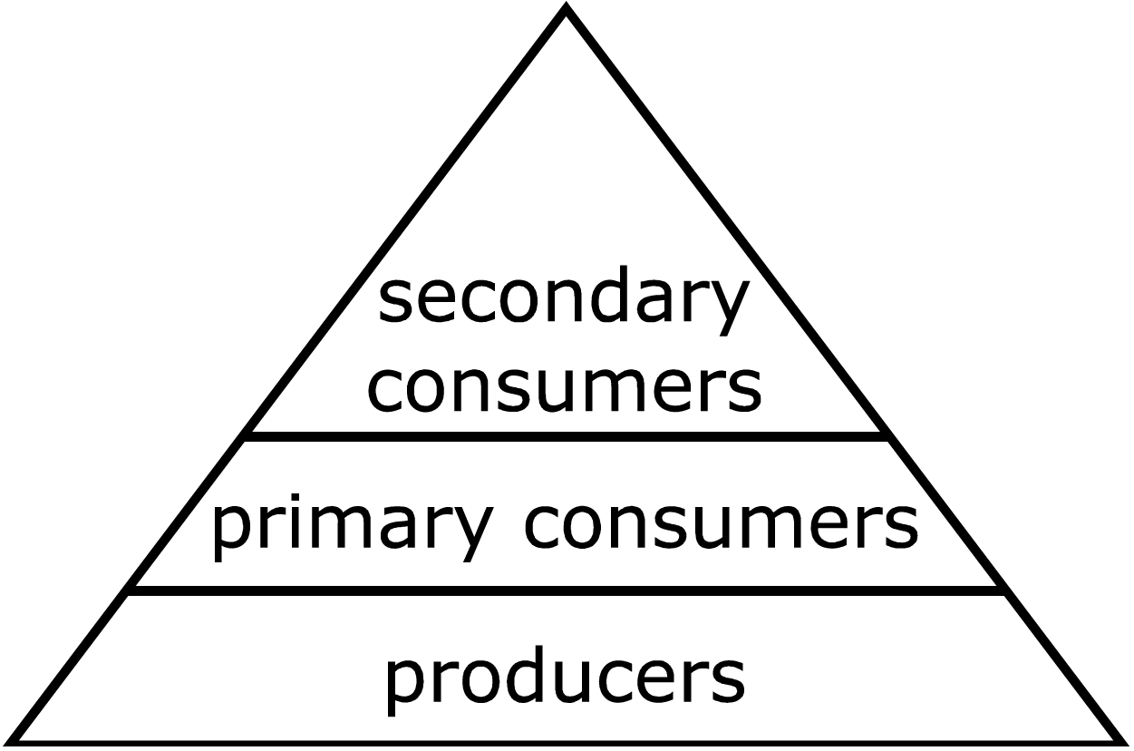 The narrowing shape reflects the decreasing energy available to primary, secondary, and tertiary consumers.