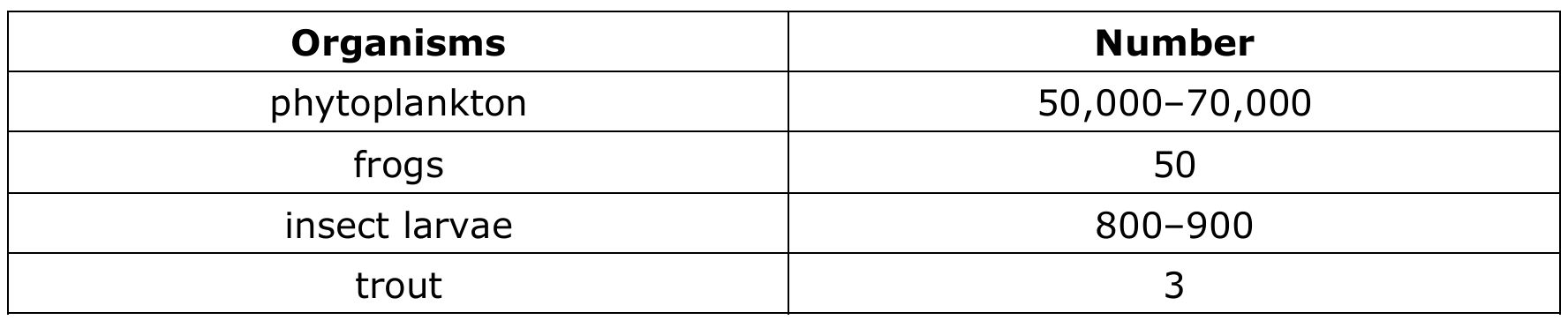 - (6) The phytoplankton population has the most energy available because it is at the bottom of the food chain.