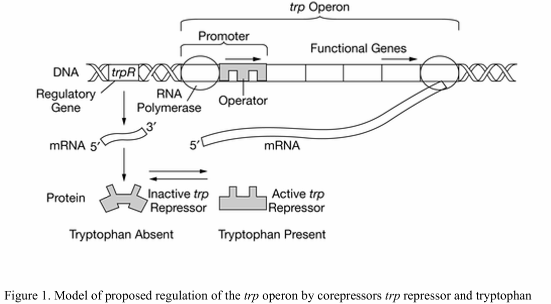 Therefore, the operon is “on” only when tryptophan levels are low or absent.