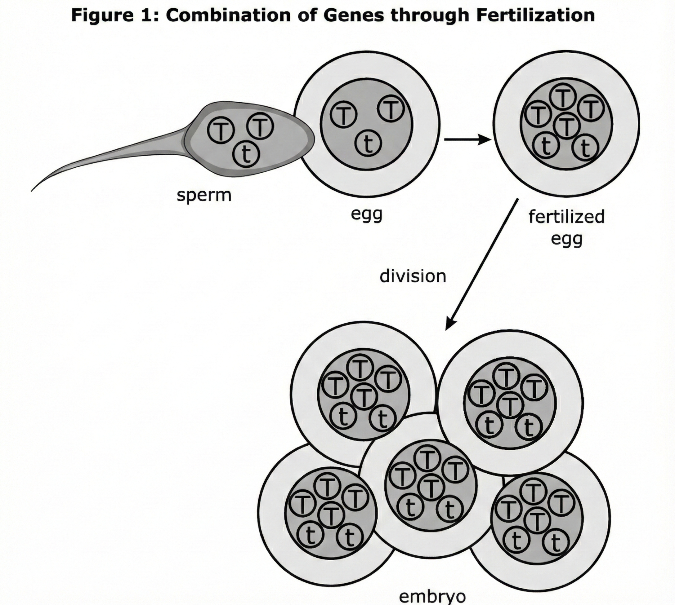 Gametes (sperm and egg) are haploid cells produced by meiosis. When they fuse during the process of fertilization, they combine their genetic material to form a zygote (embryo). The resulting embryo is diploid, meaning it contains two full sets of chromosomes (one from each parent).