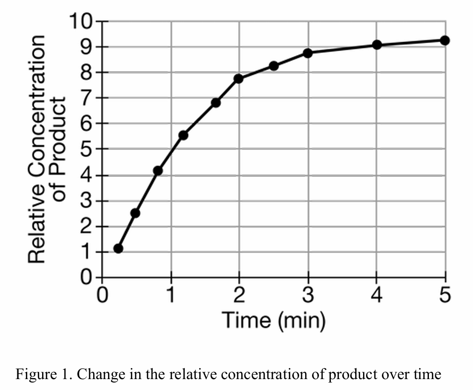The dependent variable (DV) is the variable being measured and is typically plotted on the Y-axis. The Y-axis label in Figure 1 is “Relative Concentration of Product”. Therefore, the rate is being measured by tracking the relative product produced over time.