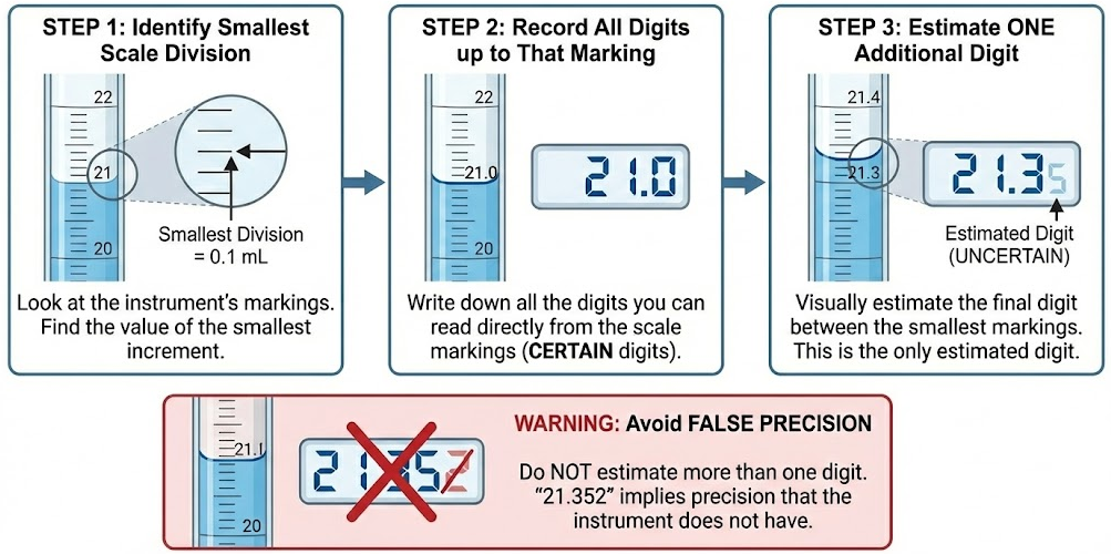 Recorded values should include one estimated digit beyond the scale of the instrument.