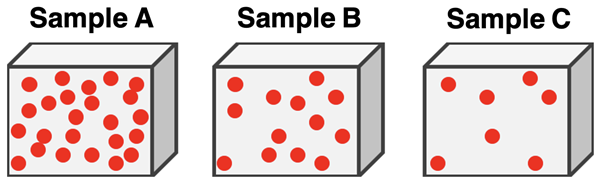 When evaluating a particulate model, focus on the number of particles in the same volume, not their appearance.
