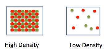 Density measures how much mass is packed into a specific volume. In particle terms, this depends on: