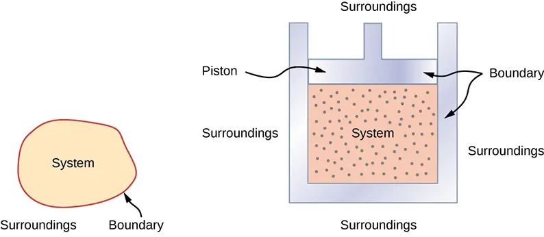 - System: the part of the universe being studied (reaction, dissolving substance, phase change)