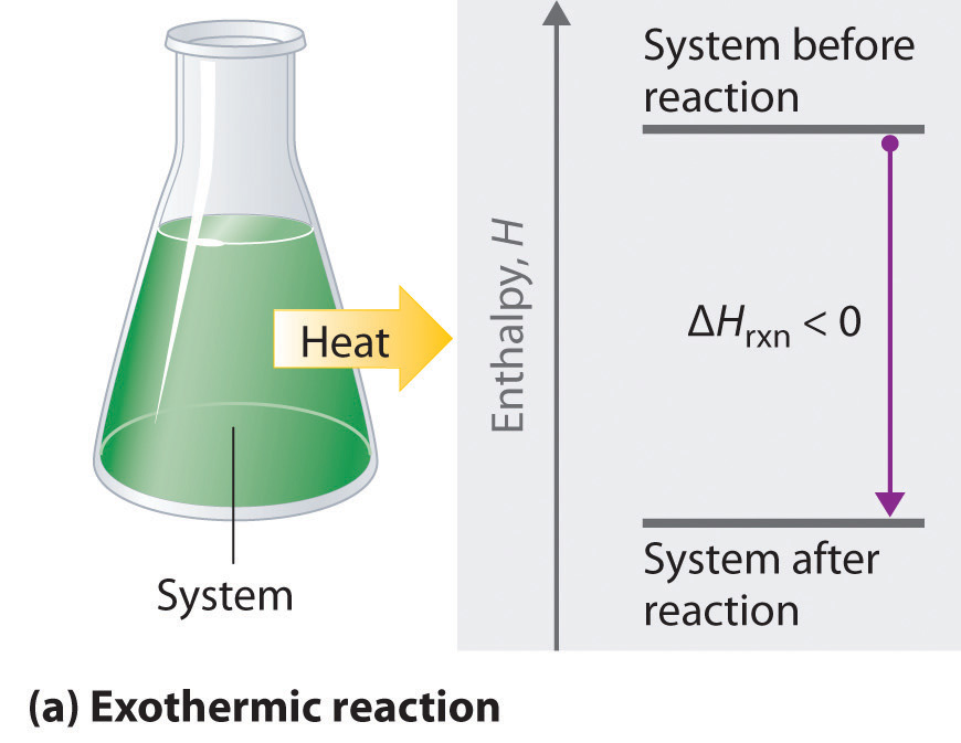 b. In exothermic changes, energy flows from the system to the surroundings.