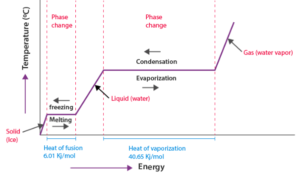 | Constant temperature plateau | Energy used for phase change |