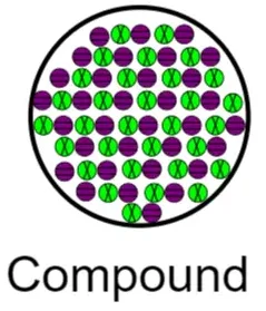 | Compound | Two or more different elements | Bonded atoms in fixed ratios |