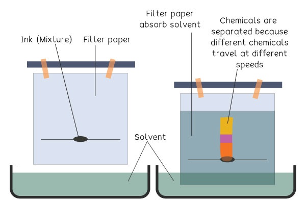 | Chromatography | Attraction to stationary/mobile phases | Components separate into distinct bands or spots |
