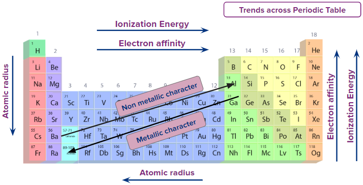 An element’s position on the periodic table reflects its number of valence electrons, which strongly influences reactivity and trends such as atomic radius, electronegativity, ionization energy, Electron Affinity , and metallic character.