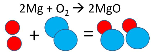 \( \mathrm{2Mg + O_2 \rightarrow 2MgO} \)