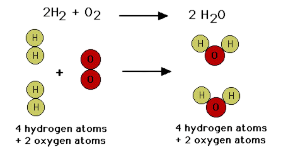 \( \mathrm{2H_2 + O_2 \rightarrow 2H_2O} \)