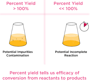 Percent yield compares actual results to expected results.