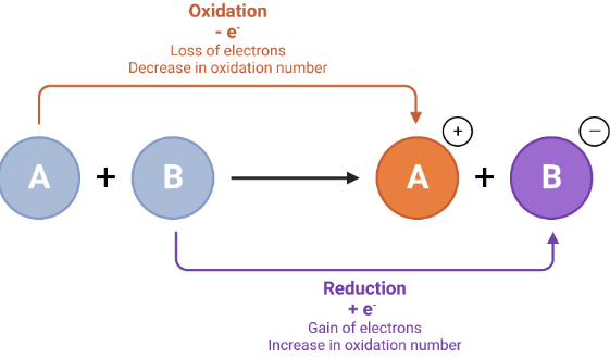 - Decrease in oxidation number → gain of electrons