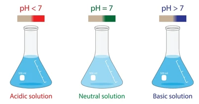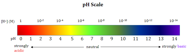 - Acidic: \( \mathrm{pH < 7} \), high \( \mathrm{[H^+]} \)